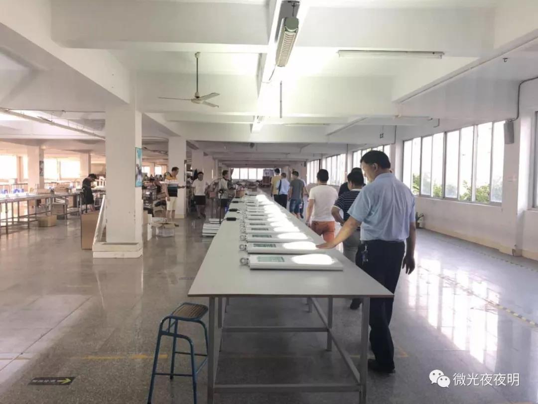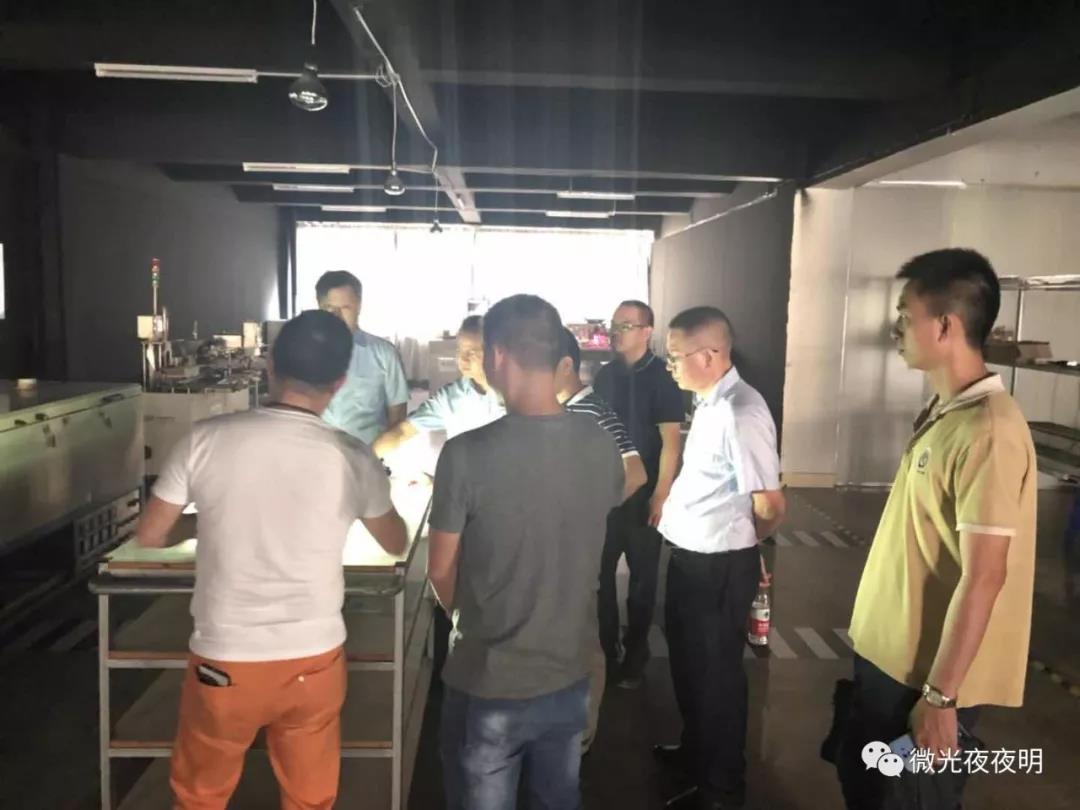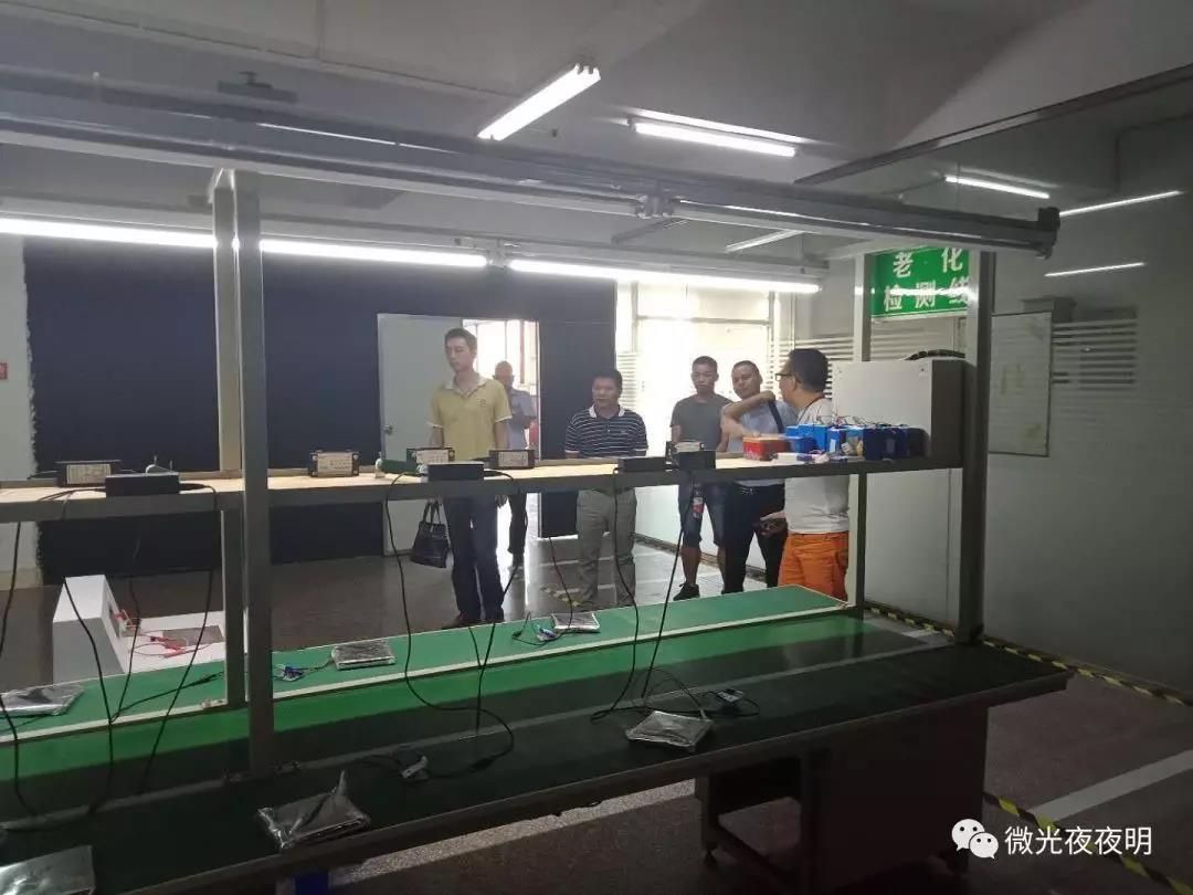 會議結束,在我司負責人的帶領下,LY城投各項目部門領導移步來到了產品的檢測室,參觀研發室及產品檢測設備生產線。仔細觀察了弱光轉換的性能及光源的檢測標準。鋰電池的充放電老化過程。