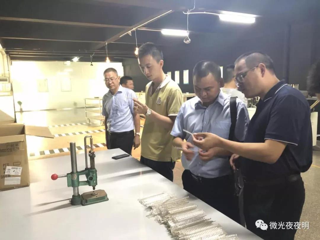 在我司展示廳,我司負責人向各位領導全面介紹了各個燈頭的型號,性能,產品之間的實物對比,優勢對比;光源照射的面積,流明的對比,IC智能芯片,電池的對比,微光硅片的對比一一作了對比解答。